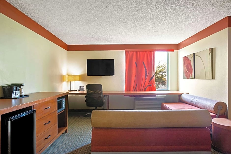 This king suite includes a microwave and refrigerator and can accommodate 2 people.
